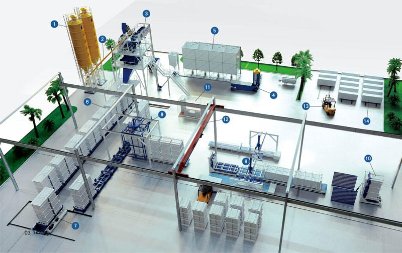 立式復(fù)合輕質(zhì)墻板生產(chǎn)線為閉環(huán)式生產(chǎn)線,采用全自動配料、連續(xù)自動攪拌技術(shù)、自動模車移動、模具翻轉(zhuǎn)自動脫模、數(shù)字化管理系統(tǒng)等來獲得外形完好和精確度高的制品。 特點(diǎn) (1)在制品生產(chǎn)過程中,該模式相對其他模式的生產(chǎn)方式占地面積最小。 (2)注料能夠快速將模腔住滿且容易搗實(shí)又不易形成空鼓,因此可以獲得很高的成品率。 (3)該生產(chǎn)線只需通過增加模具量即可擴(kuò)大生產(chǎn)量。 |