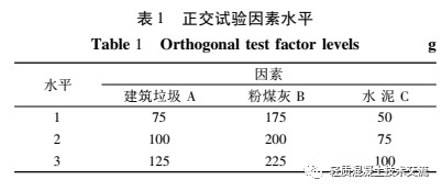 在確定建筑垃圾再生微粉制備陶粒的******物料配合比時(shí), 以建筑垃圾、粉煤灰和水泥 3 種主要原材料為影響因素, 進(jìn)行 3 水平 3 因素正交試驗(yàn)設(shè)計(jì), 每組試驗(yàn)中生石灰用量為 15 g, 石膏粉為 30 g, 硅酸鈉為 5 g, 正交試驗(yàn)因素水平見表 1。