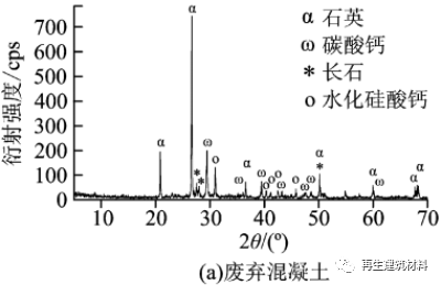 廢棄混凝土主要由廢棄混凝土粉磨后 200 目篩下細(xì)粉組成,廢棄混凝土中含有石英、碳酸鈣、長石和水化硅酸鈣礦物, 廢棄粘土磚中含有石英和鈣長石,具有一定的礦物活性,具備作水泥活性混合材的條件。