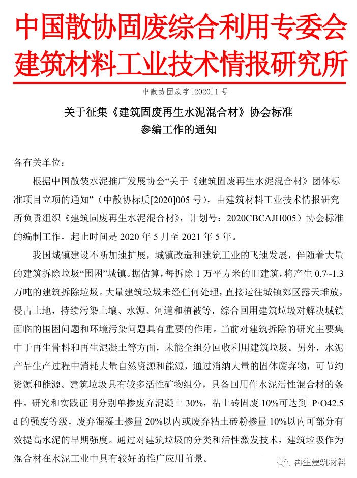 我國城鎮(zhèn)建設(shè)不斷加速擴(kuò)展,城鎮(zhèn)改造和建筑工業(yè)的飛速發(fā)展,伴隨著大量的建筑拆除垃圾“圍困”城鎮(zhèn)。據(jù)估算,每拆除 1 萬平米 的舊建筑, 將產(chǎn)生 0.7~1.3 萬 t 的建筑拆除垃圾。大量建筑垃圾未經(jīng)任何處理,直接運(yùn)往城鎮(zhèn)郊區(qū)露天堆放,侵占土地,持續(xù)污染土壤、水源、河道和植被等,綜合回用建筑垃圾對(duì)解決城鎮(zhèn)面臨的圍困問題和環(huán)境污染問題具有重要的作用 。當(dāng)前對(duì)建筑拆除的研究主要集中于再生骨料和再生混凝土等方面,未能全組分回收利用建筑垃圾。另外,水泥產(chǎn)品生產(chǎn)消耗大量自然資源和能源,可消納大量的固體廢棄物,節(jié)約資源和能源。為了提高建筑拆除垃圾的資源化效率和質(zhì)量,筆者對(duì)建筑拆除垃圾用作水泥混合材進(jìn)行了試驗(yàn)研究。